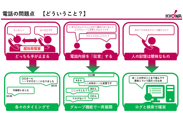 日々の業務では、部署内外を含め多くの連絡・確認が発生します。