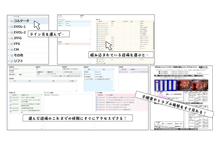 一方で、複数種類の設備を適切に維持・管理するためには、トラブル履歴や部品交換履歴などの情報を「必要なときにすぐ取り出せる状態」にしておく必要があります。